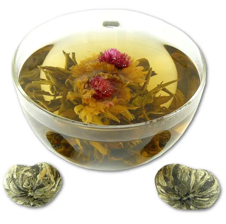 Sposób zaparzania: 1 kulka herbaty na 400–500 ml wody o temperaturze 80–85°C. Wlać wodę powoli do dzbanka lub dużej filiżanki i obserwować proces rozkwitania. Parzyć 3–5 minut. Można zalewać kilkukrotnie.